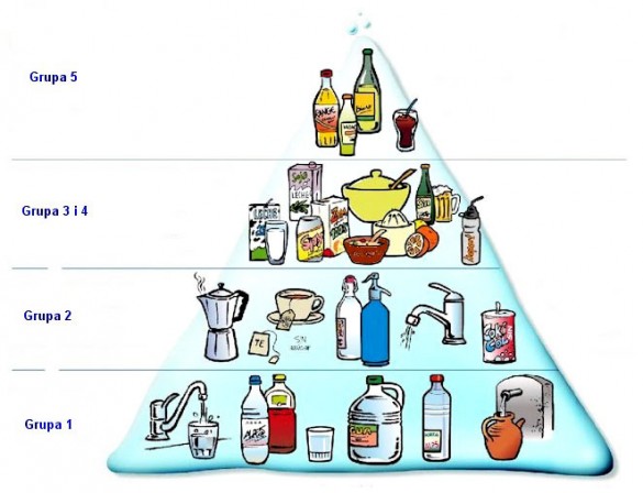 U grupi 1, u podnožju piramide, postoje i mineralna voda, izvorska voda ili voda iz slavine s malom količinom soli. To su tečnosti koje treba konzumirati svaki dan.