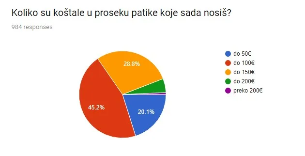 Ovo je ujedno, i cena koju trkači smatraju fer cenom (63% njih). Očigledno je da većina smatra da domaći zastupnici imaju prevelike cene, ali taj procenat je čak 85%.