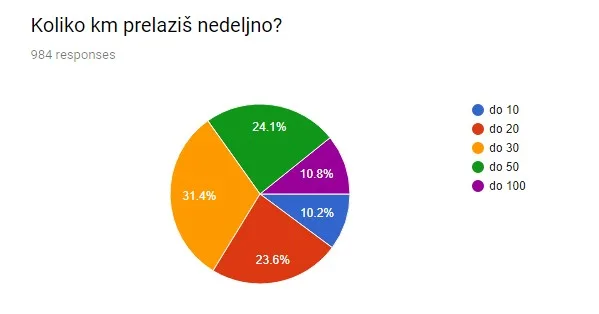 Da nas najviše čitaju “pravi” rekreativci definitivno smo potvrdili kada sumiramo ove rezultate. Iako trčimo redovno, kilometraža koju najčešće istrčimo ne prelazi 30km a preko 26% trkača u protekloj godiniji nije istrčalo nijedan polumaraton. Petina je istrčala samo jedan.