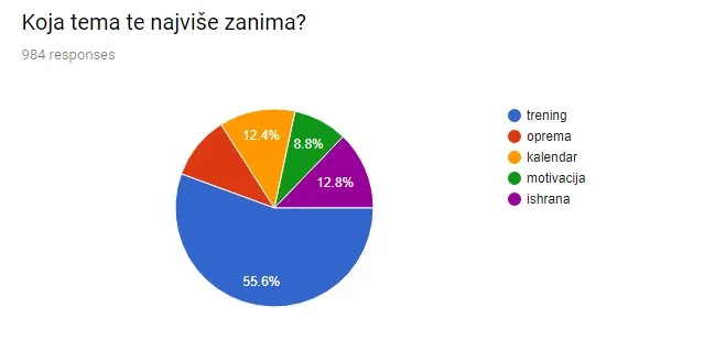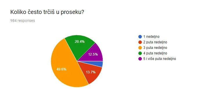 Muškaraca u našoj anketi je bilo 55.5% žena 45.5% Ova statistika malo odskače od naših pratilaca na društvenim mrežama i posetilaca sajta, gde žene jesu u blagoj prednosti. Izgleda da manje trče ili im se nije delila trkačka intima 🙂