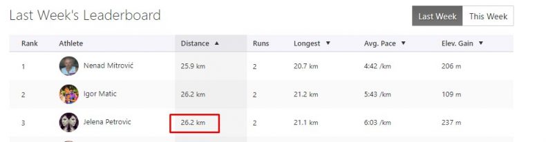 U prvih 100 rezultata bila je baš jaka konkurencija, te smo odlučili da nagradimo najmanji broj kilometara, među ženama, i najmanje ih je imala Jelena Petrović, Uprkos istrčanom polumaratonu!
