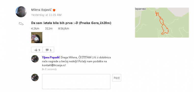 Pobednika ili pobednicu ćemo svake nedelje objaviti na sajtu, i pisati mu u komentaru na STRAVI kako bi nam poslao podatke.