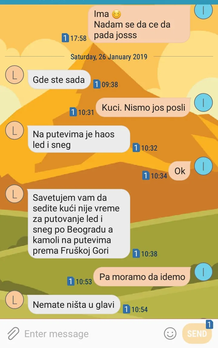 Nakon što smo se iščupali iz prestonice, sve je bilo lakše.  Ali na par kilometara do našeg odredišta, shvatamo da ostatak puta nije čišćen. Samo nekoliko automobila je prošlo tuda. Ma idemo i mi.