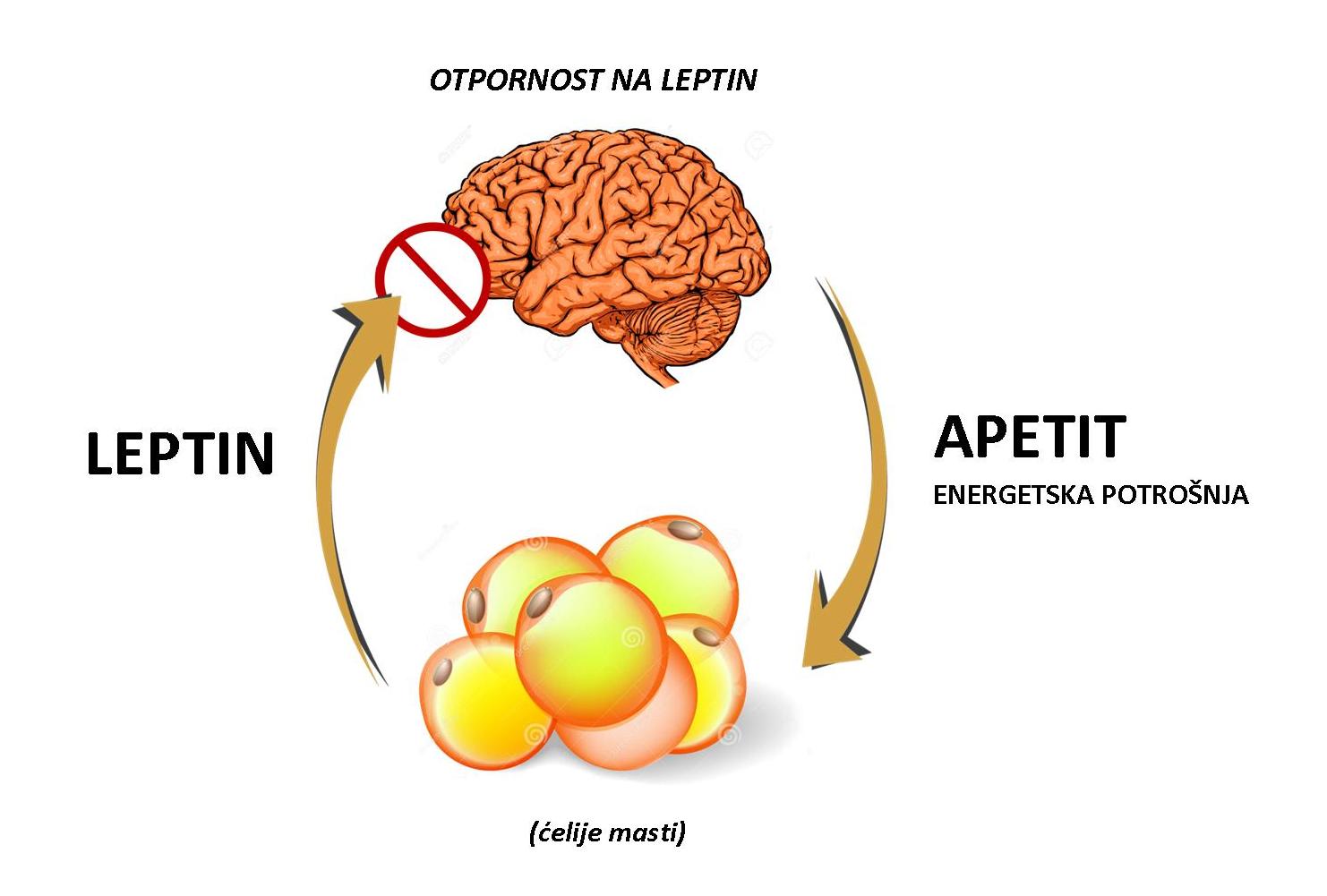 Ovo svakako ne zvuči dobro, ali da pojednostavimo – dovoljno velika količina masti, dovoljno velika količina leptina, ali ovi signali jednostavno ne stižu do mozga, tako da i dalje postoji uvećan apetit, ali ne i dovoljno energije.