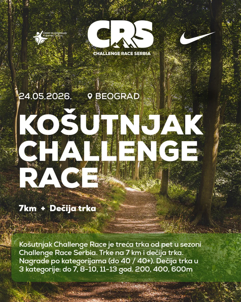 Košutnjak Challenge Race 📍Treća trka iz Challenge Race Serbia serijala u organizaciji Saveza za fitnes i rekreaciju Srbije. Jedna od najstarijih trail trka u Srbiji koja se organizuje još od 2012. godine – pravi spoj tradicije, prirode i sportskog izazova. 📅 Nedelja, 24.5.2026. 📏…