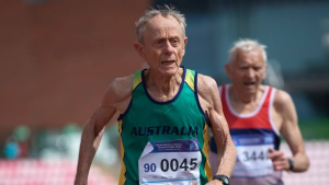 Neizvesna trka 90-godišnjih atletičara na 400 metara Trka najboljih svetskih Master trkača (trkača veterana), sa preko deset svetskih rekorda u starosnoj grupi. Fotka: World masters athletics Magazin